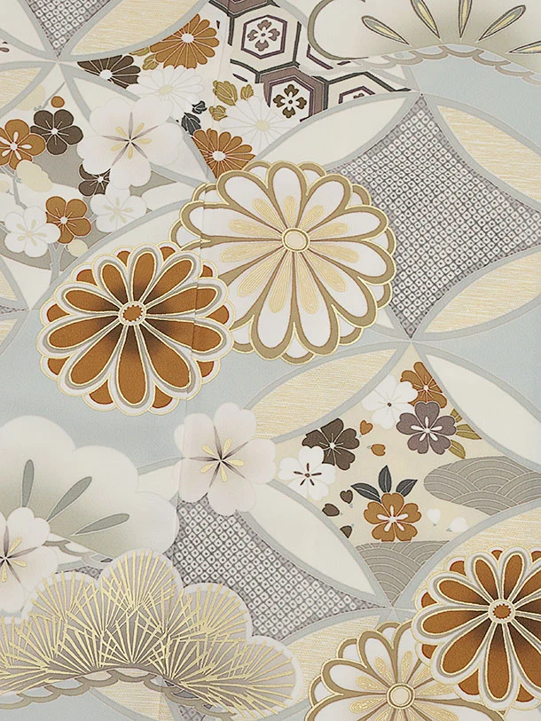訪問着t1562 紅一点 グレー 七宝に菊(S)