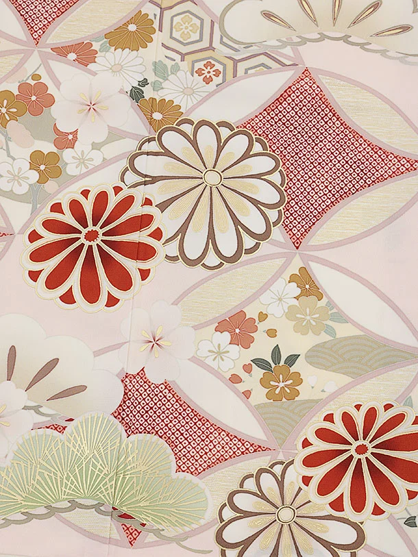 訪問着tt1575 紅一点 ピンク 七宝に菊(トールサイズ)