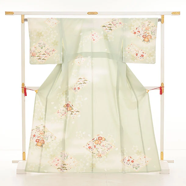 訪問着tt1576 華徒然 ヒワ色 松皮菱に花(トールサイズ)