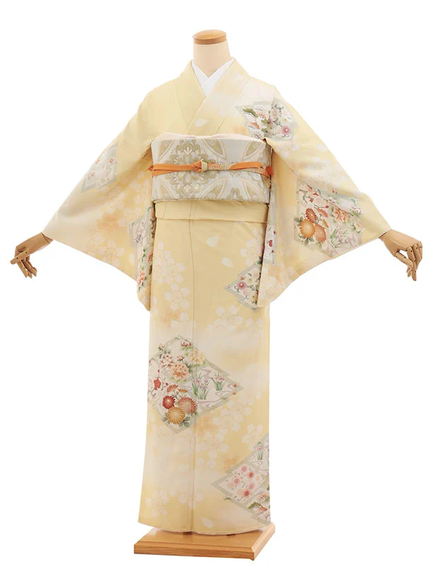 訪問着tt1577 華徒然 クリーム 松皮菱に花(トールサイズ)