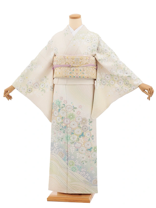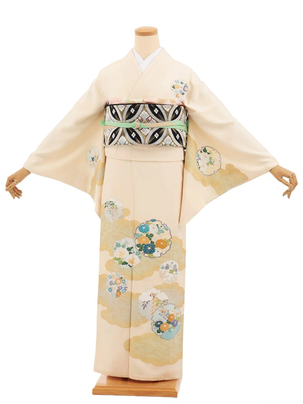 訪問着tt1577(トールサイズ) 華徒然 クリーム 松皮菱に花