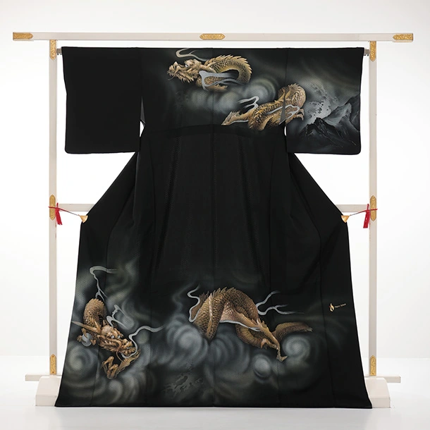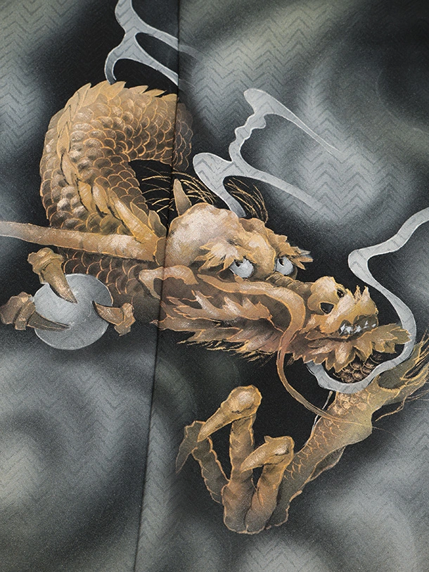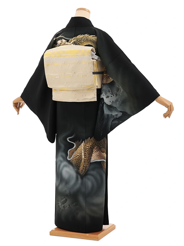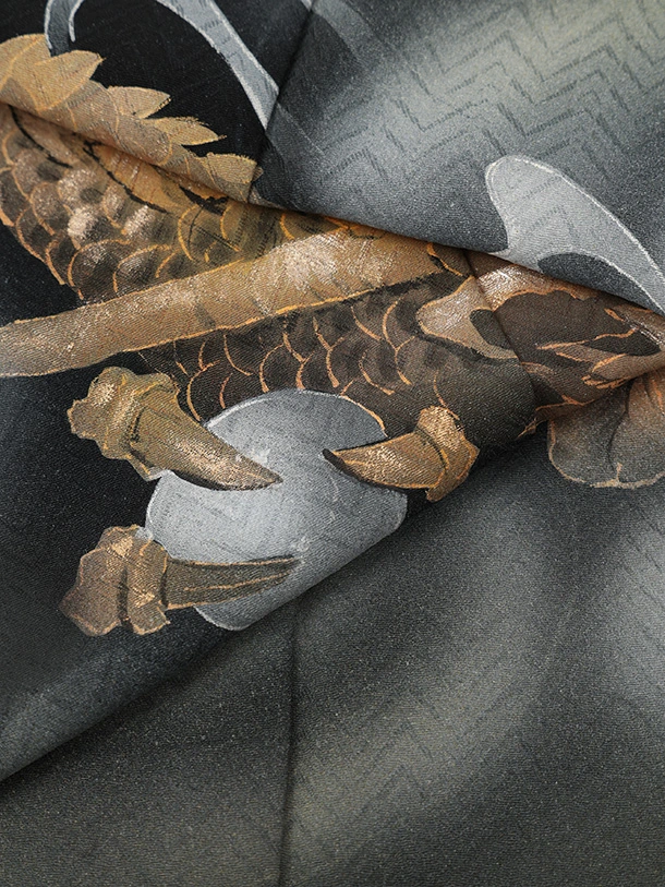 訪問着t1586 黒地 金の龍