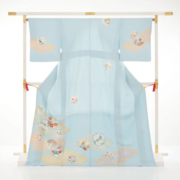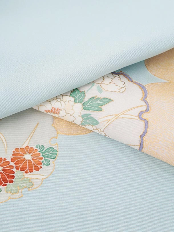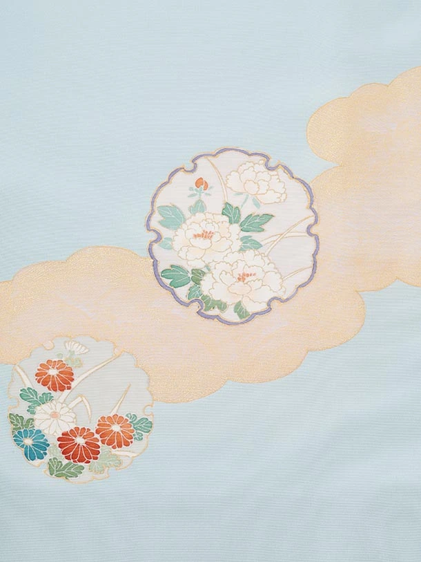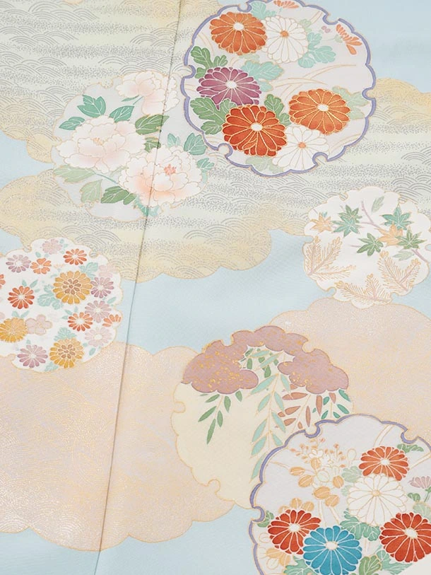 訪問着t1593 川島織物 水色 雲取りに雪輪