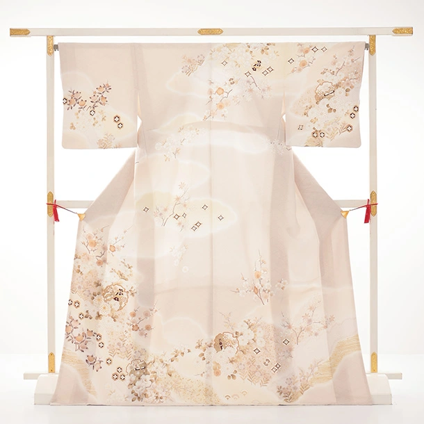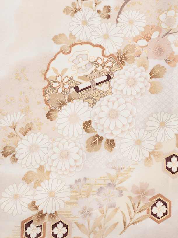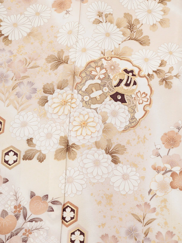訪問着t1599 ベージュ地 雪輪に四季花