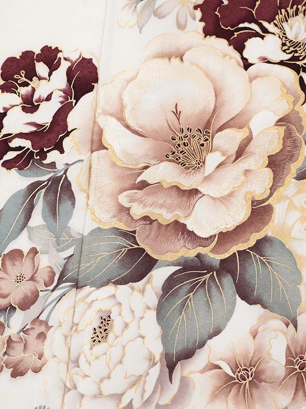 訪問着t1604 白地 まりにぼたん花