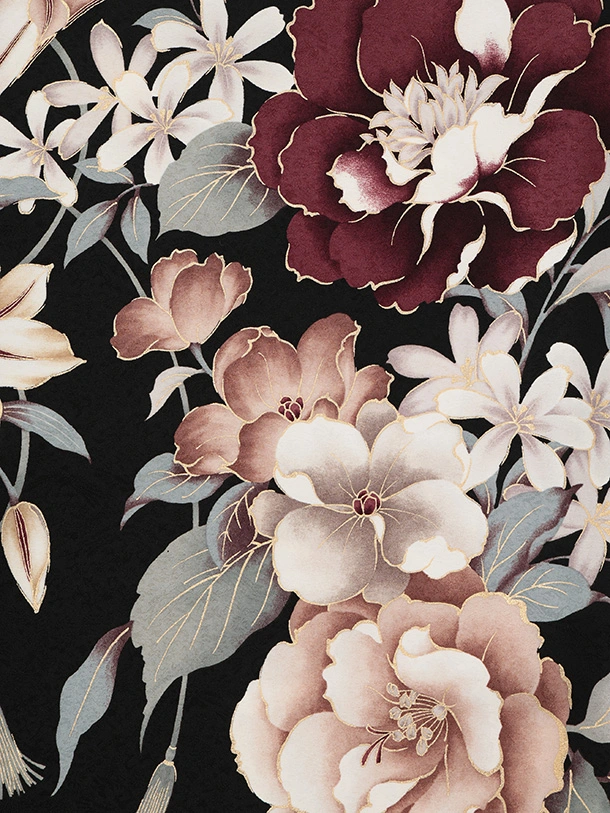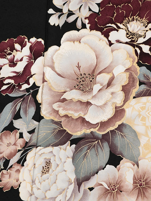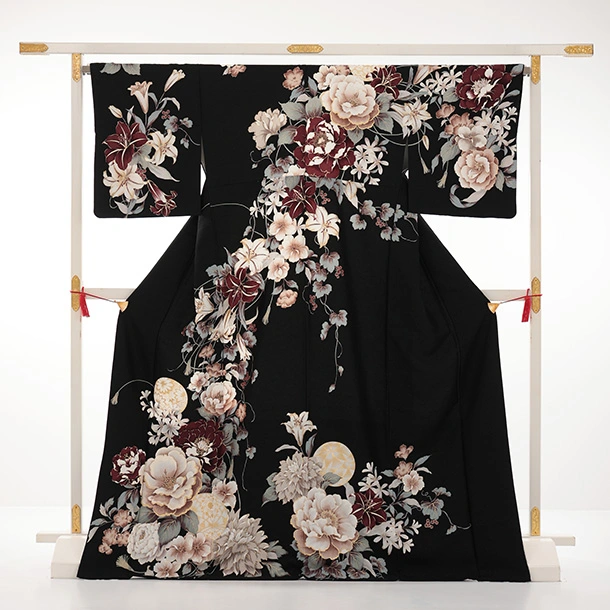 訪問着t1605 黒地 まりにぼたん花