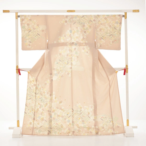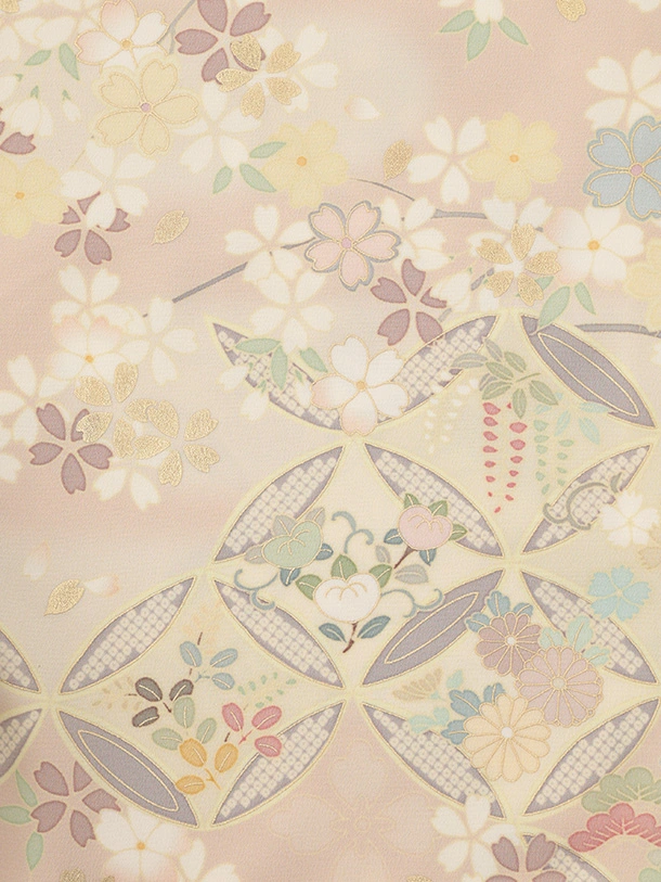 訪問着t1606 JAPAN STYLE ピンクベージュ 七宝に桜