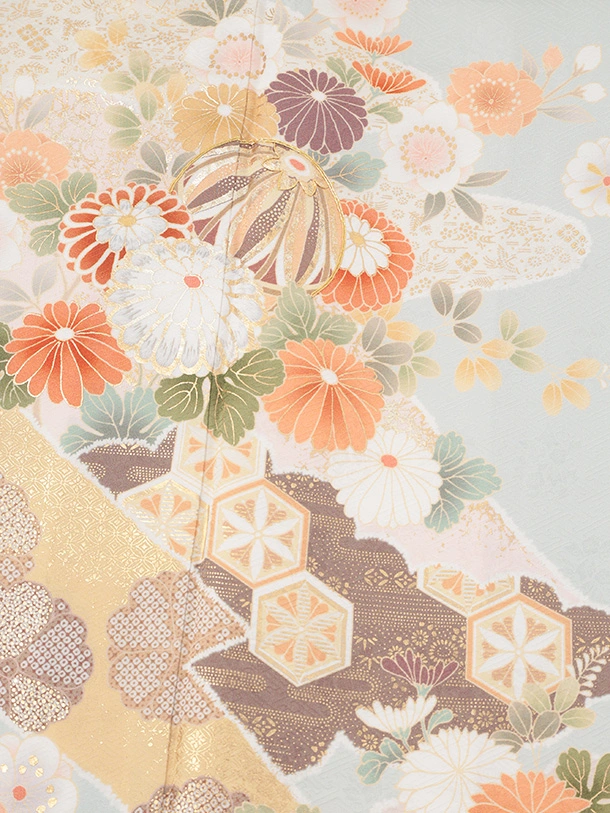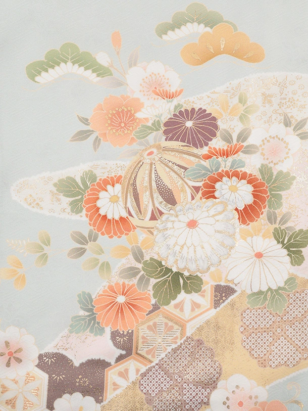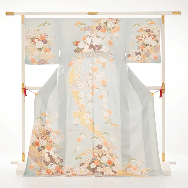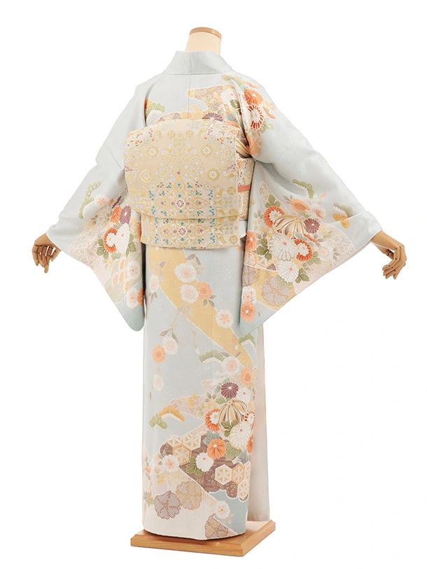 訪問着tt1612(トールサイズ) 淡ブルーグレー 桜菊にまり