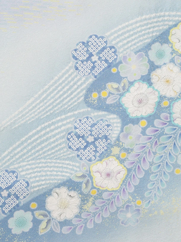 訪問着t1614 桂由美 ペールブルー 辻が花調