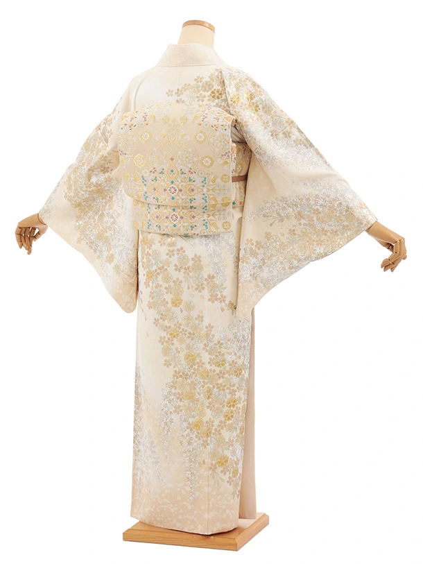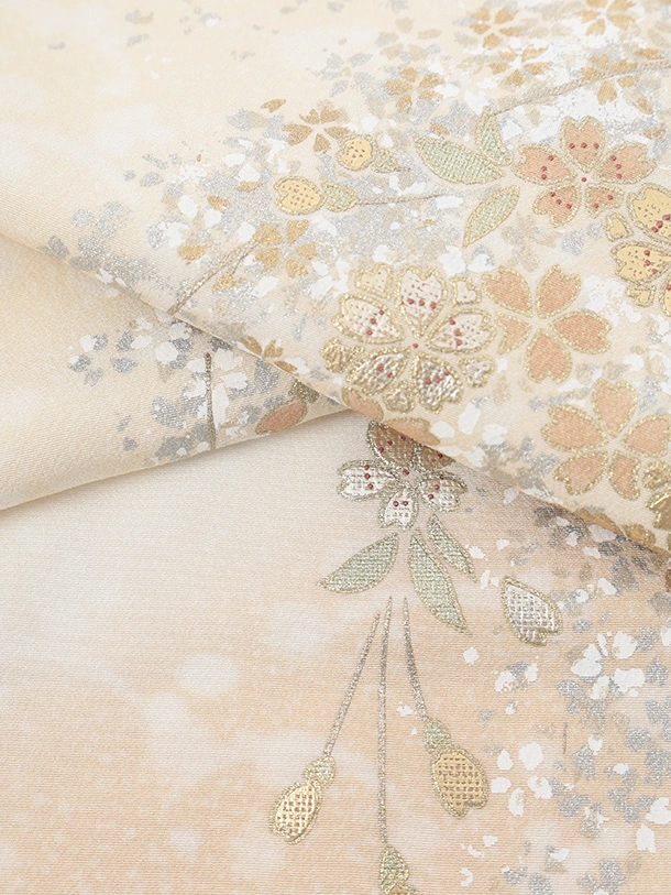 訪問着t1616 桂由美 クリームベージュ 金銀彩 桜