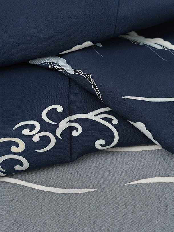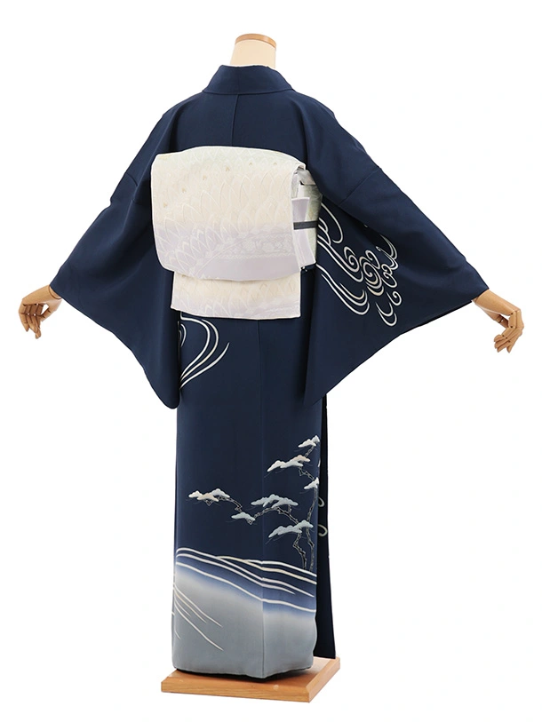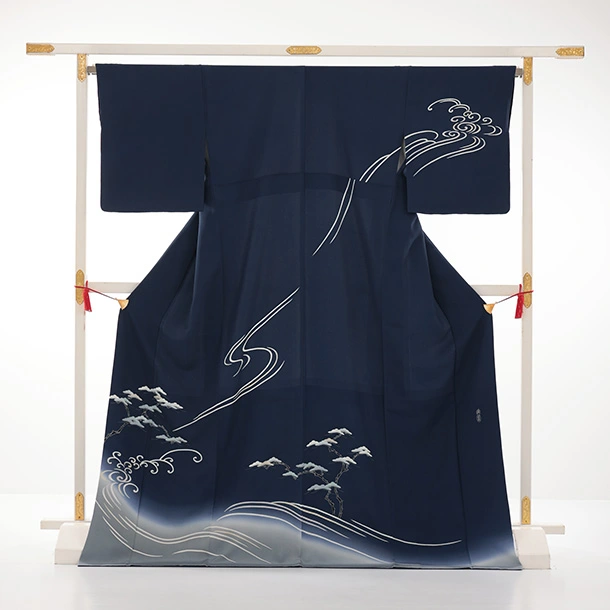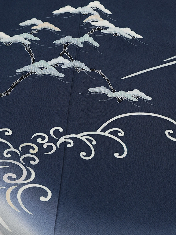 訪問着t1621 清染居 上野街子 紺地 松に波頭