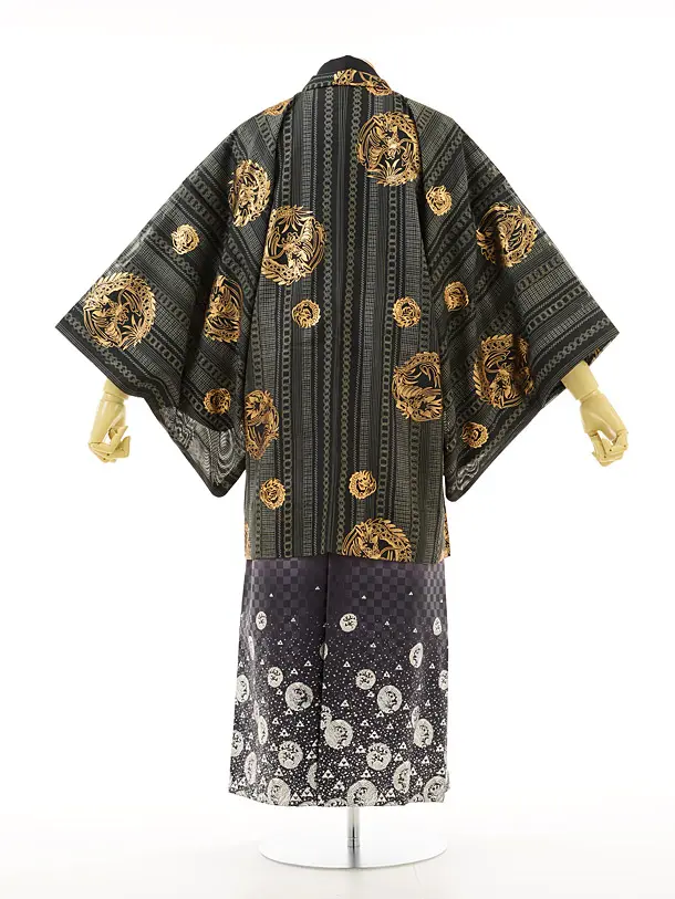 夏男性用袴men0015黒小紋黒×龍ラメ(M)