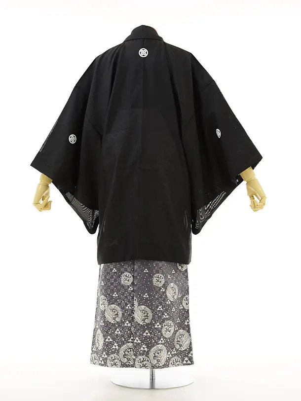 夏男性用袴men0016黒紋付×龍ラメ(L)