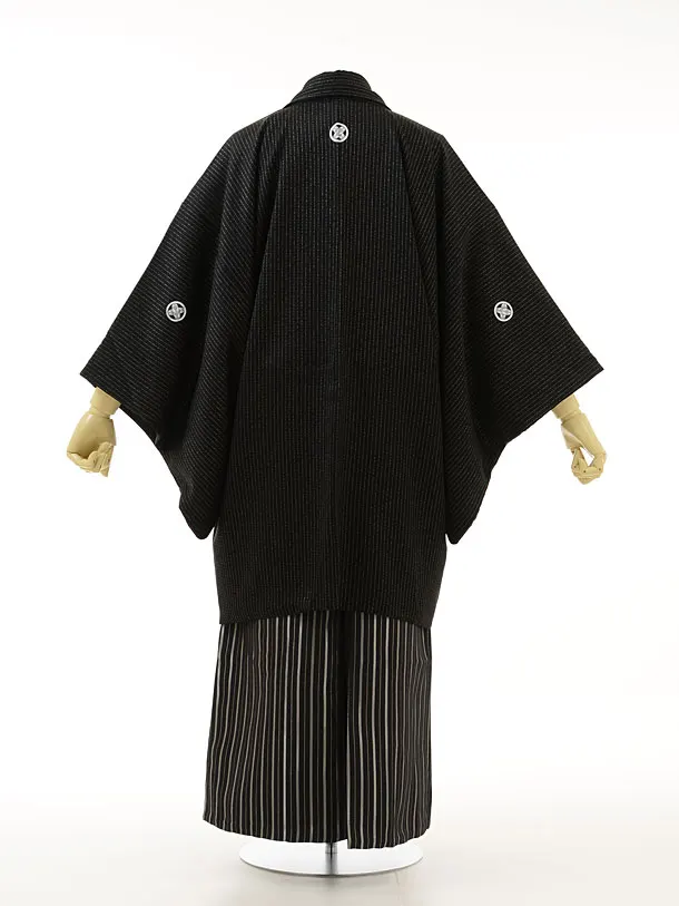 男性用袴men0033黒ラメ紋付×黒ラメ縞(L)