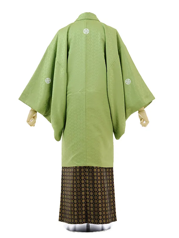 男性用袴men0053 若草色紋服×黒ゴールド袴(L
