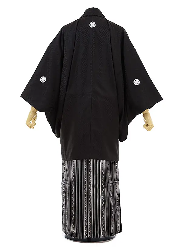 男性用袴men0063黒地 紗綾型 紋付×白黒 ぼかし袴(L)