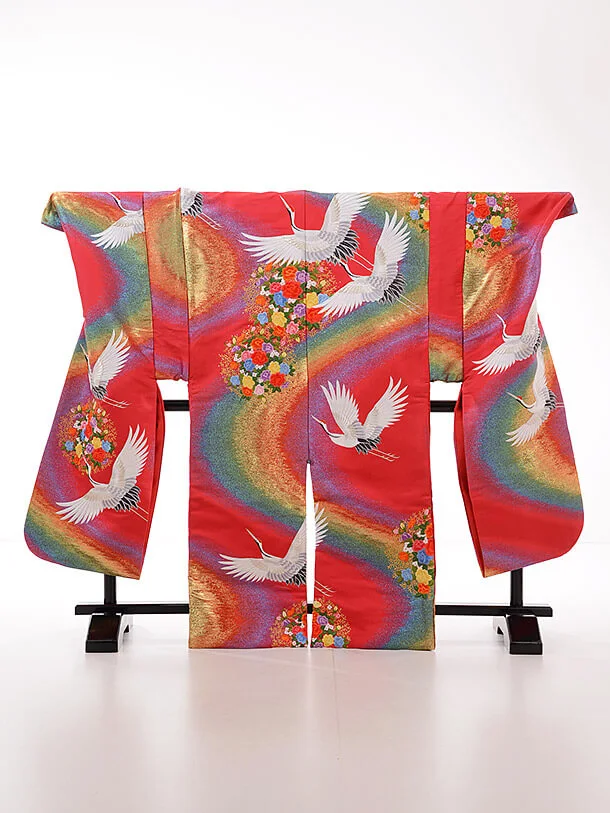 ピンク レインボー 鶴 羽織 肩裄:約76㎝