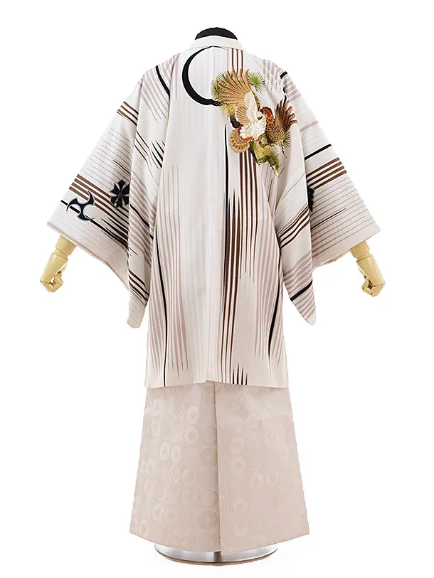 男性袴レンタル0304 ホワイトシルバー亀甲紋服×黒金龍