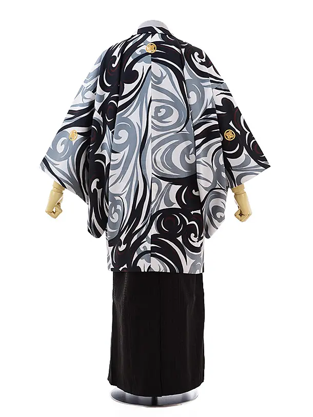男性用袴men0089 白地 風×黒(L)