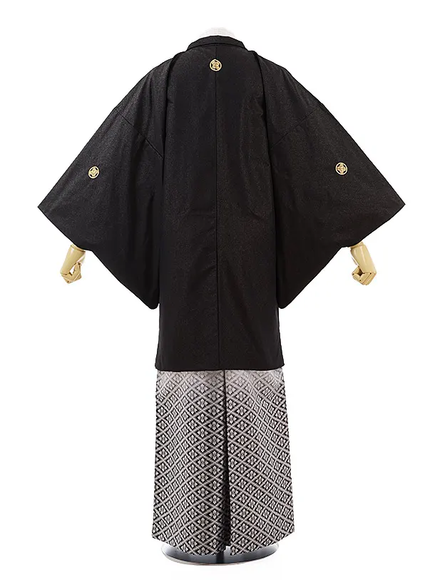 男性用袴men0098 黒ラメ 紋付×白黒ぼかし菱(LL)