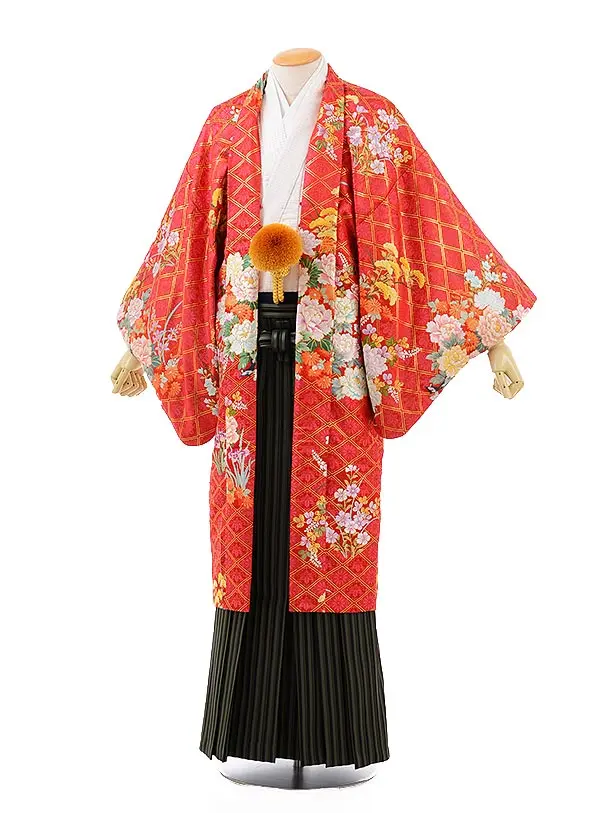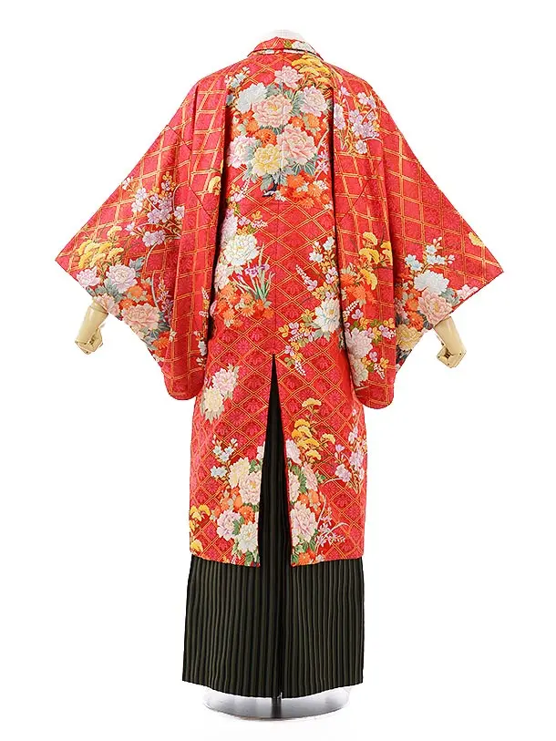 男性用袴men0105赤地菱ぼたん×黒グリーンストライプ袴