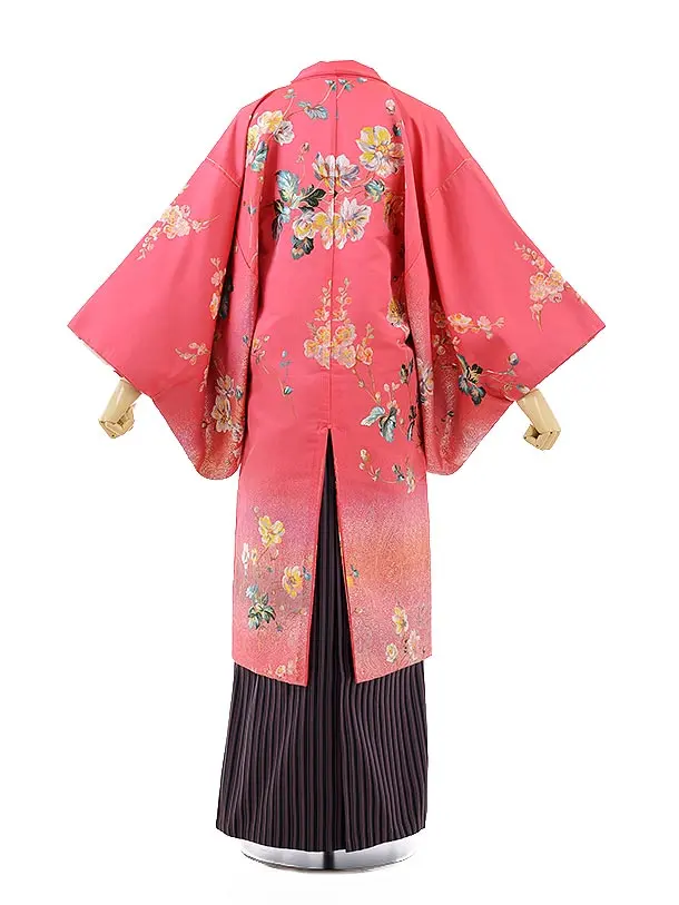 男性用袴men0107ピンク地花×黒パープルストライプ袴