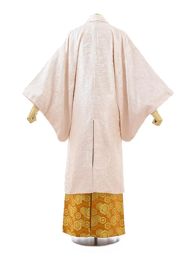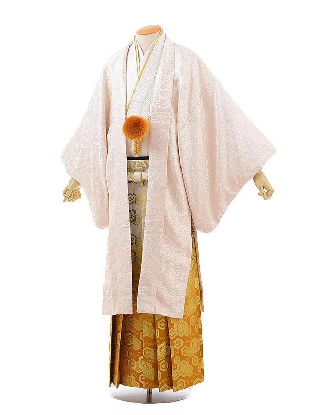 男性用袴men0110オフホワイト唐織×ゴールドぼかし袴
