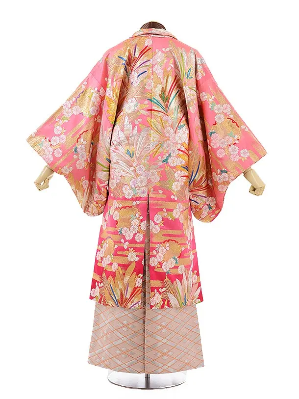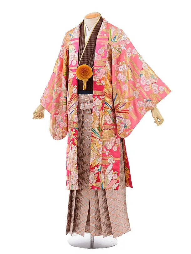 男性用袴men0120ピンクぼかし桜×ピンクベージュ菱袴