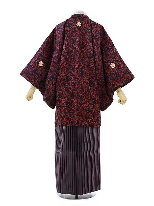男性用袴men0121黒地赤変わり柄×パープルストライプ袴