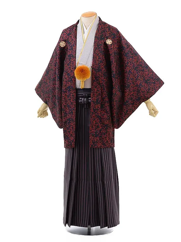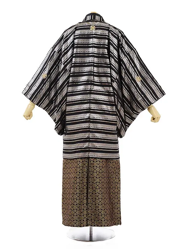 男性用袴men0124黒シルバー縞×黒ゴールド袴