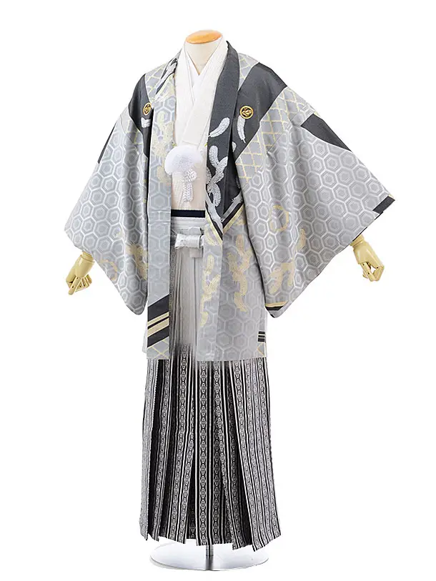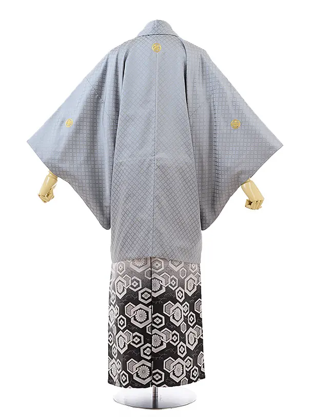 男性用袴men0128 グレー 刺子 紋服×白黒ぼかし袴