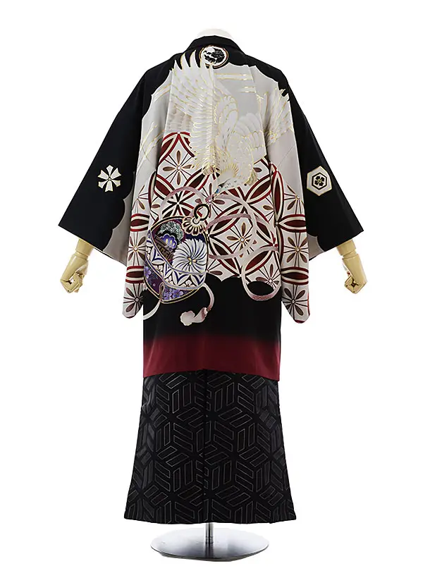 卒業式成人式袴レンタル142JAPANSTYLE黒赤鷹×七宝(L)