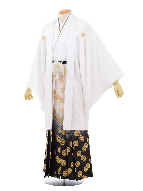 卒業式成人式袴レンタル154白シルバー変わり袴×黒ゴールド袴(M)