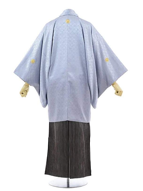 男性袴レンタル0169 グレーx 白黒シルバー 縞袴(L)/170~175㎝