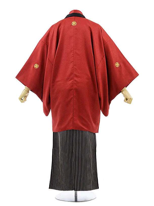 男性袴レンタル0172 赤黒 x 白黒シルバー 縞袴(L)/170~175㎝