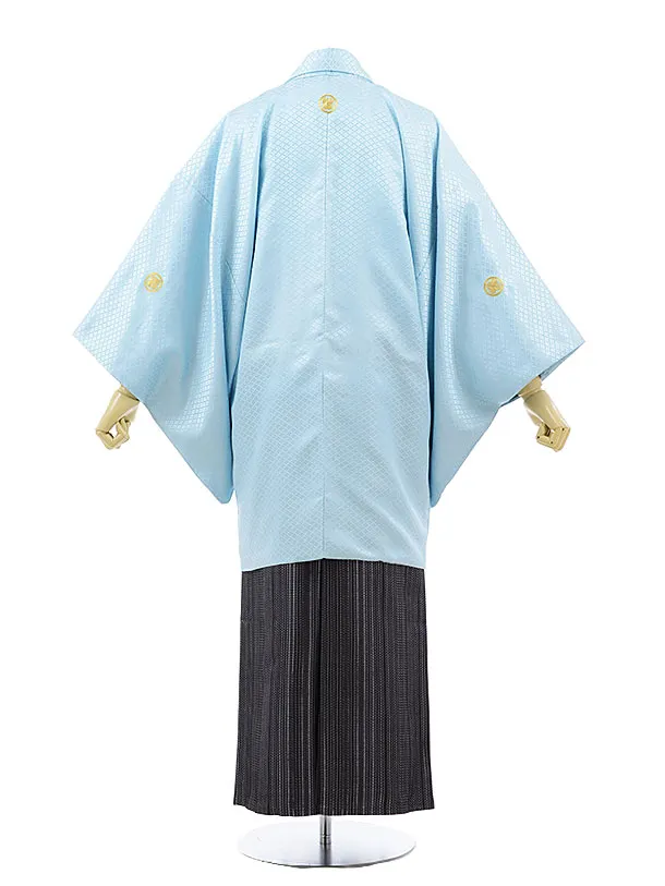男性袴レンタル0177 水色 x 黒シルバー 縞袴(L)/170~175㎝