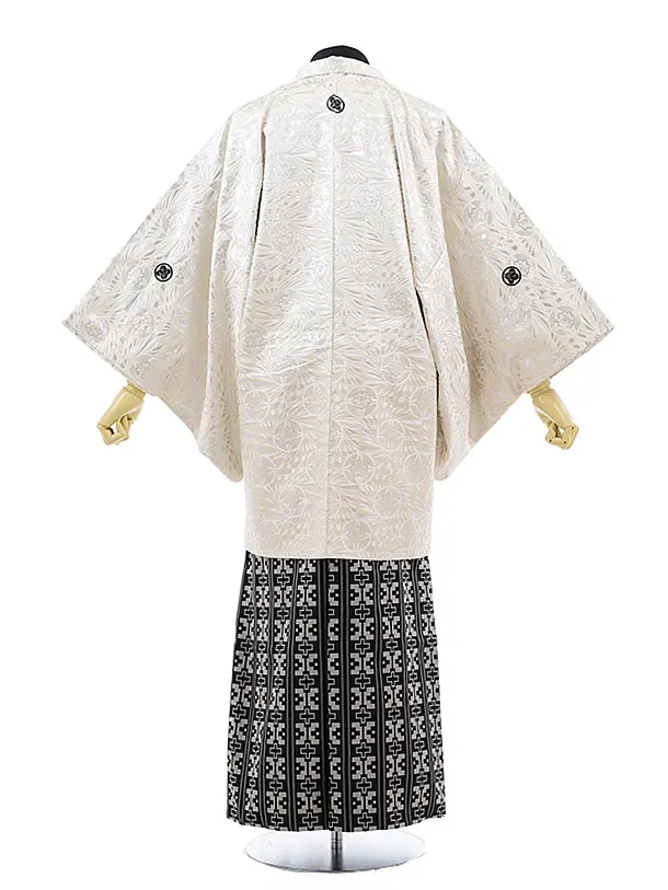 男性袴レンタル0197 白シルバー x黒グレー 袴(LL)/175~180