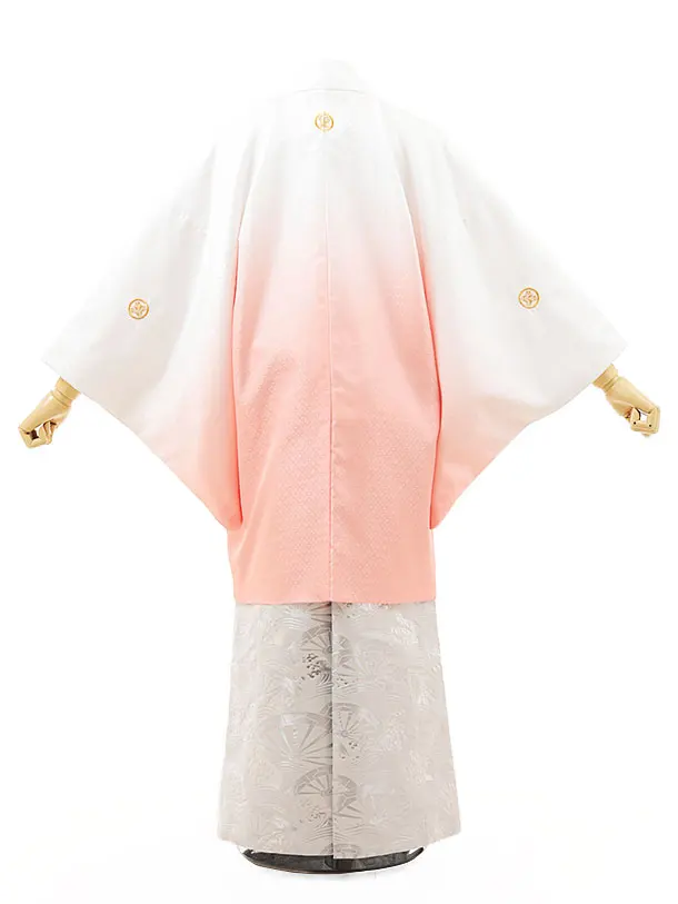 男性袴レンタル0237 白サーモンピンクぼかし紋付×白シルバー