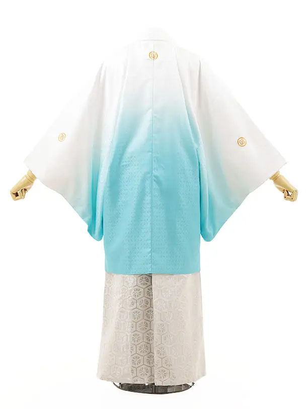 男性袴レンタル0240 白水色ぼかし紋付×白シルバー