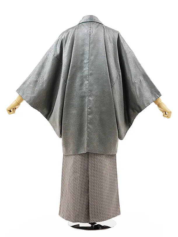 男性袴レンタル0244 シルバーグレー紋付×ベージュストライプ