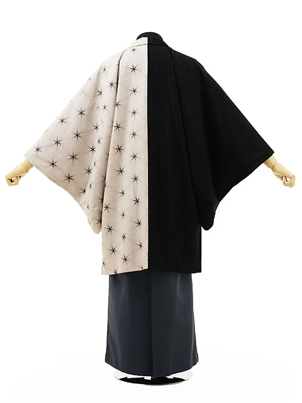 男性袴レンタル0195 JAPAN STYLEクリームx 黒袴(L)