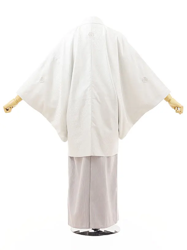 男性袴レンタル0262 薄白グレー紋付×グレーラメ