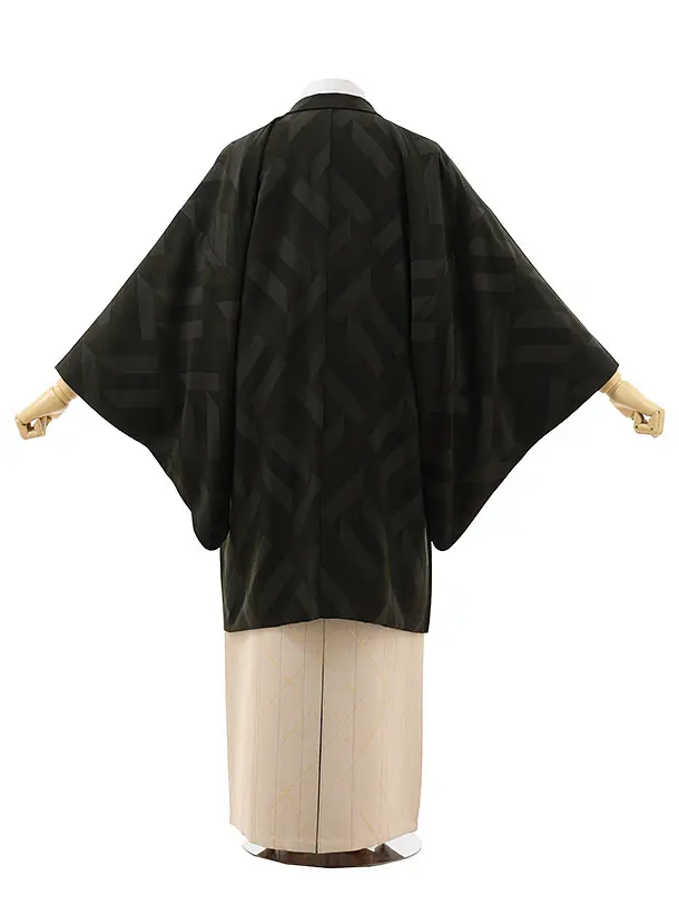 男性袴レンタル0268 JAPAN STYLE モスグリーン幾何学×アイボリー