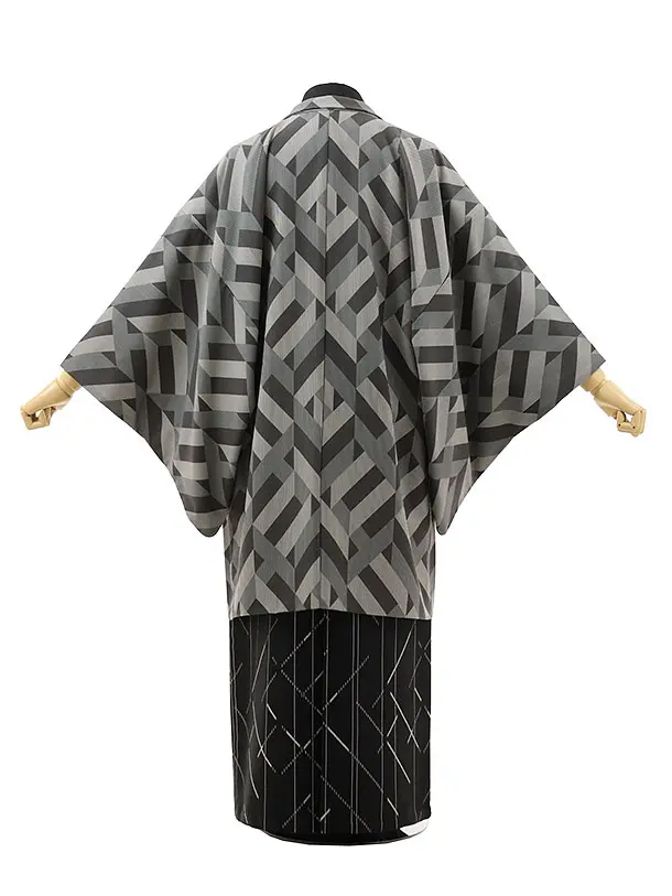 男性袴レンタル0273 JAPAN STYLE グレー幾何学×黒