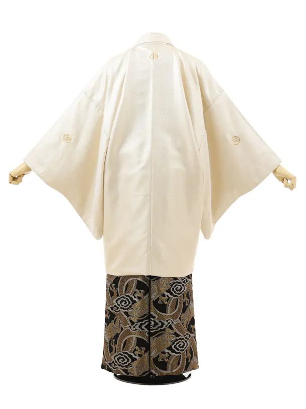 男性袴レンタル0307 ゴールド亀甲紋服×黒金龍