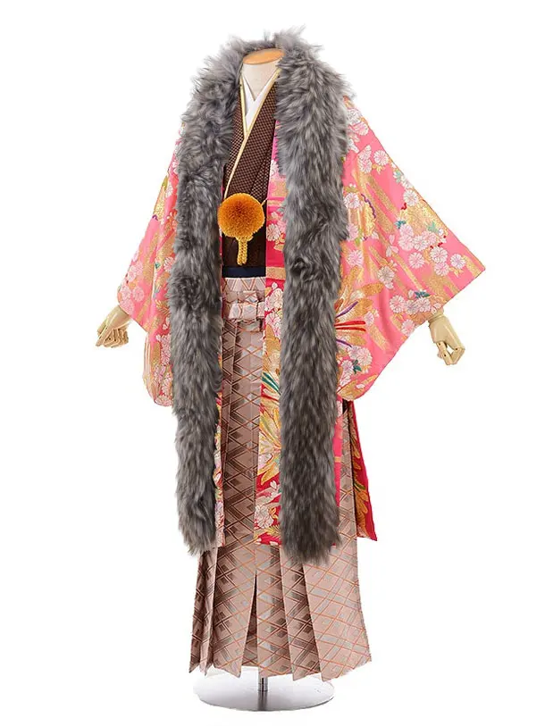 成人式卒業式袴レンタル(男)D020シルバーピンク紋付