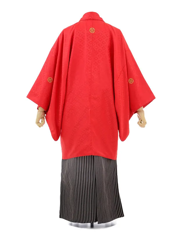 成人式卒業式袴レンタル(男)D023赤紋付×黒シルバ