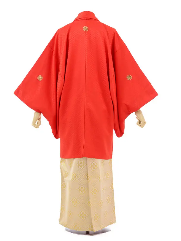 成人式卒業式袴レンタル(メンズ)D044赤紋付×ゴール