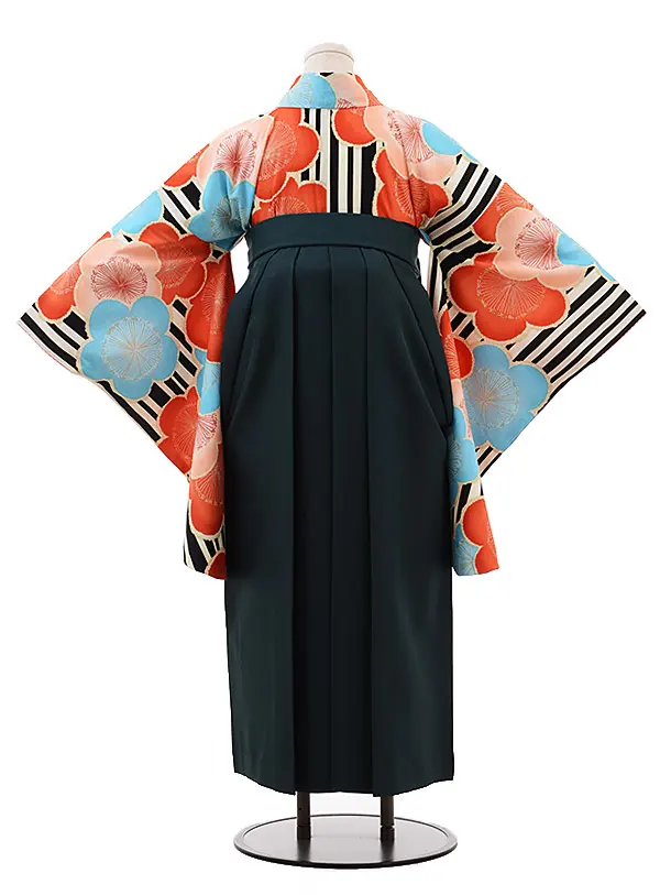 卒業式袴レンタル h084 九重 黒ストライプ×グリーン