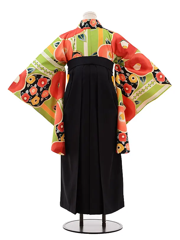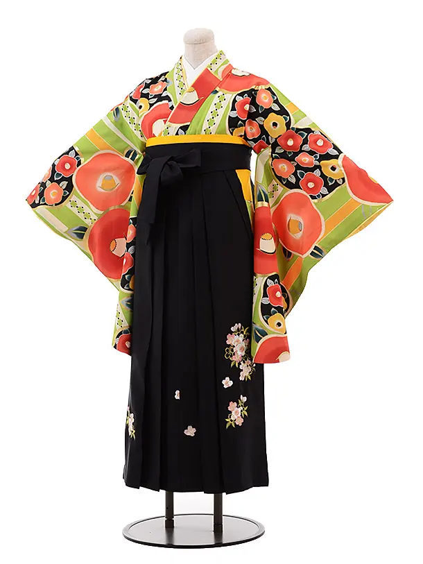 卒業式袴レンタルh094グリーン地椿×黒